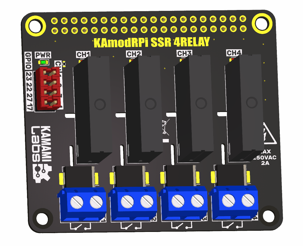 Moduł w postaci nakładki do Raspberry Pi wyposażony w cztery przekaźniki półprzewodnikowe. W porównaniu do przekaźników elektromechanicznych, SSR są oparte na elementach półprzewodnikowych (tranzystory i tyrystory) i oferują większą szybkość przełączania. Zastosowane w module przekaźniki mogą sterować prądem przemiennym. Moduł znajdzie zastosowanie w projektach automatyki domowej, systemach oświetlenia i wyposażeniu ogrodu.