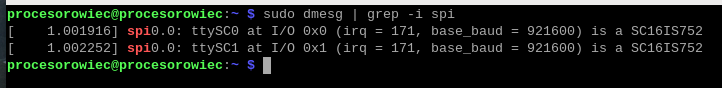 Oznacza to, że kontroler SC16IS762 został prawidłowo zainstalowany w systemie.
