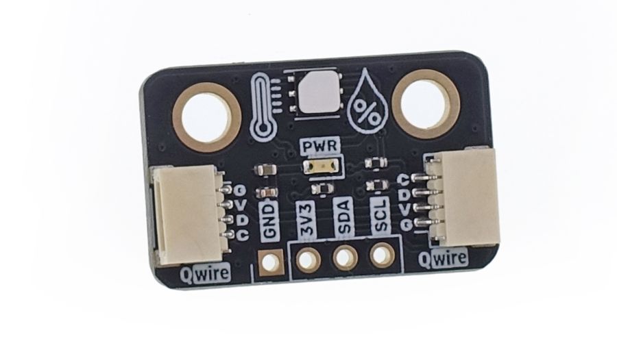 Module with an affordable and easy-to-use Si7021 temperature and humidity sensor from Sillicon Labs. The sensor communicates via I2C and can measure temperature in the range of -40 to 125°C and relative humidity in the range of 0 to 100% RH. The board is equipped with I2C Qwire connectors (compatible with Qwiic/STEMMA QT) and a single-row connector with a 2.54 mm pitch. The board includes an LED indicating the presence of power and 4.7 kΩ pull-up resistors for the I2C interface lines, which can be easily disconnected if necessary.